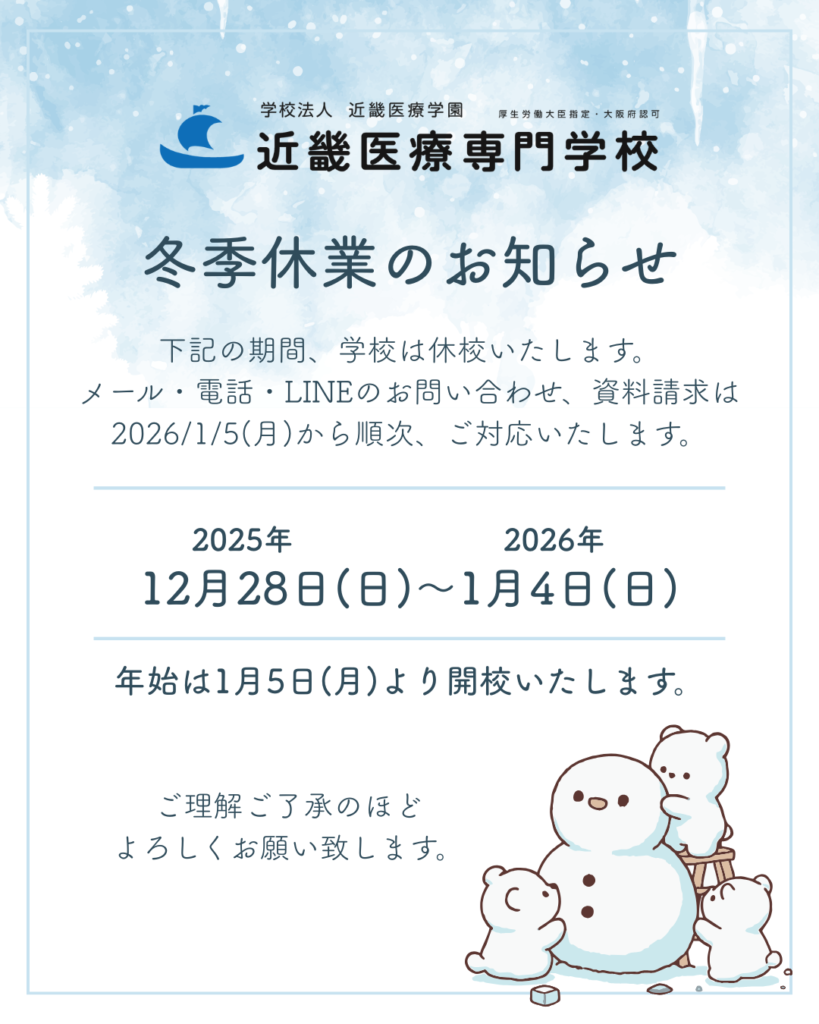 平素より近畿医療専門学校のホームページをご覧いただき、誠にありがとうございます。