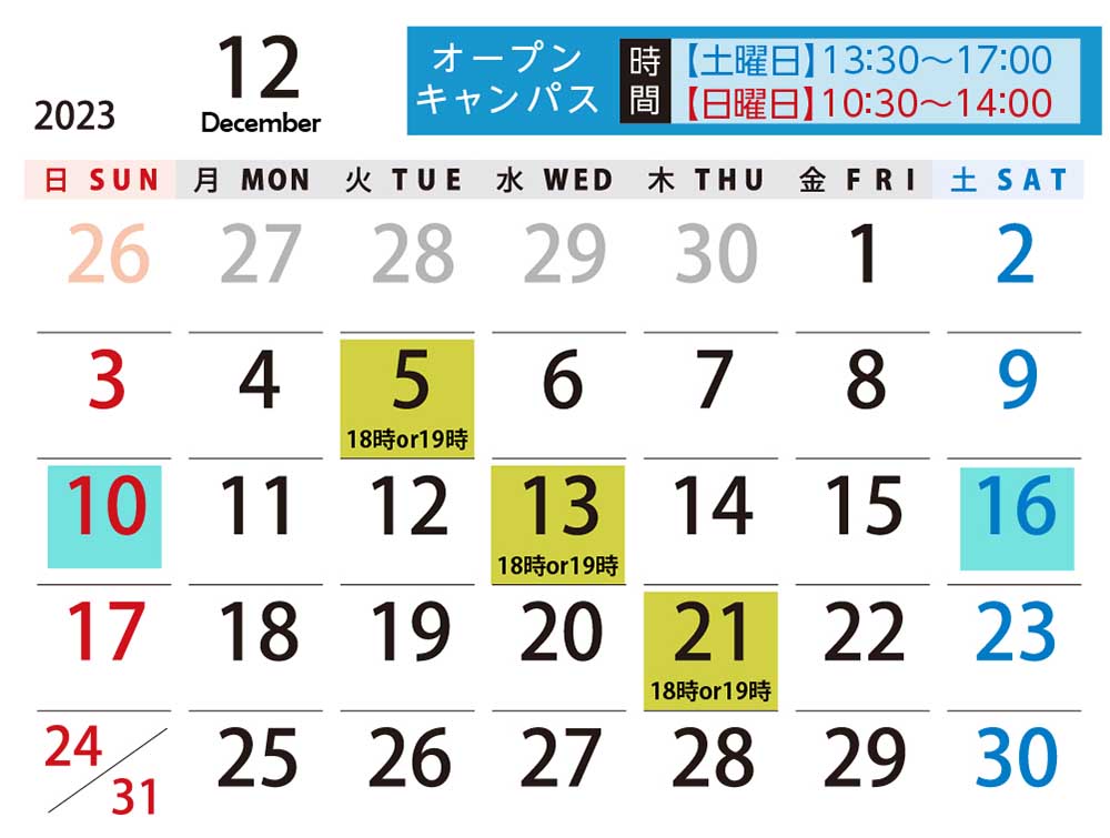 オープンキャンパス 開催日程
